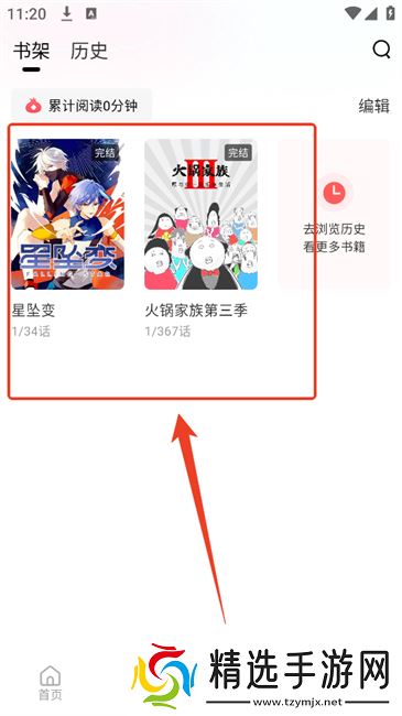 4、返回软件,点击软件主页面下方的【书架】,可以看到已经收藏的作品
