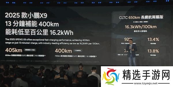 动力方面,2025款小鹏X9提供两驱和四驱两种规格,电耗低至16.2kWh/100km。新车支持800V架构、5C快充技术,仅需13分钟即可补能400km。车辆提供94.8度磷酸铁锂和105度三元锂两种电池包,续航里程分别为650km、702km和740km。单电机版最大功率为235kW,双电机版最大功率达到370kW,0-100km/h加速仅需5.7秒,最高时速可达200km/h。
