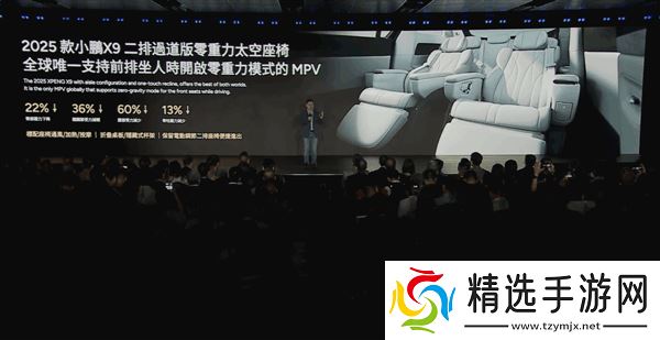 在舒适性方面,2025款小鹏X9更是下足了功夫。何小鹏表示,新车最大的特点是舒适,达到了百万级豪车的水平。新车是全球唯一全系标配过道版零重力太空座椅的MPV,即便前排坐人时也能开启零重力模式,并且可根据前排座椅姿态自动调节零重力角度。二排座椅还配备了双50W无线快充、杯托、小桌板以及220V电源。