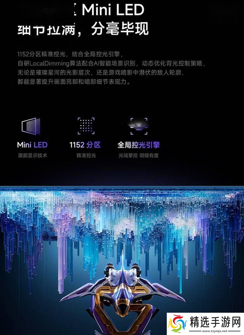 在显示效果方面,G Pro 27U配备了1152个分区的Mini LED屏幕,峰值亮度高达1600nits,并支持HDR1000和杜比视界。通过内置的自研LocalDimming算法和AI智能场景识别,该显示器能够动态优化背光控制策略,提供4档控光模式,确保在各种场景下都能呈现出最佳的显示效果。