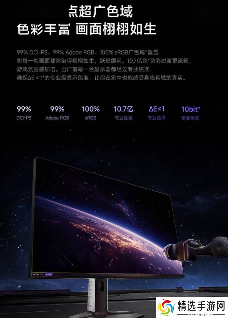 色彩表现方面,Redmi G Pro 27U显示器覆盖了99% DCI-P3、99% Adobe RGB和100% sRGB广色域,拥有10bit色深和10.7亿专业色数,色准ΔE<1,能够满足专业设计师和摄影师对色彩精准度的要求。