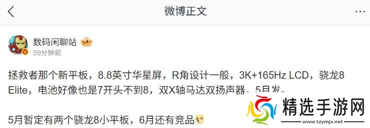 博主还在评论区回复了部分网友的问题:针对平板只有iPad和其他的言论,博主回复“iPad mini没有高刷”;针对新平板的屏幕是否为旧款屏幕,博主表示“不,这次是新屏幕,前代是 8.8"2.5K”。
