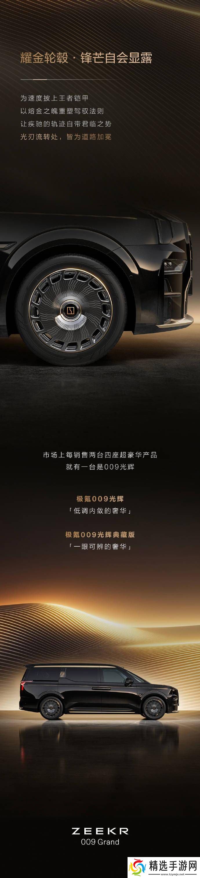 极氪官方在发布的新车细节中透露,极氪009光辉典藏版的前脸装饰有熠熠生辉的“耀金徽标”,尾部则镶嵌有独特的“黄金尾铭”,而车身侧面则装配了闪耀的“耀金轮毂”。这些设计元素共同彰显了该车的尊贵与奢华。极氪还自豪地宣布,市场上每售出两台四座超豪华MPV,就有一台是极氪009光辉系列。