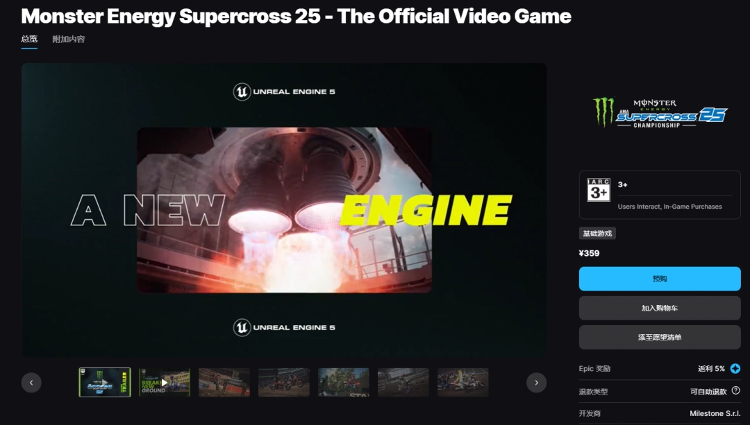 EPIC平台购买链接:https://store.epicgames.com/zh-CN/p/monster-energy-supercross-25-the-official-video-game-c4ff5b。