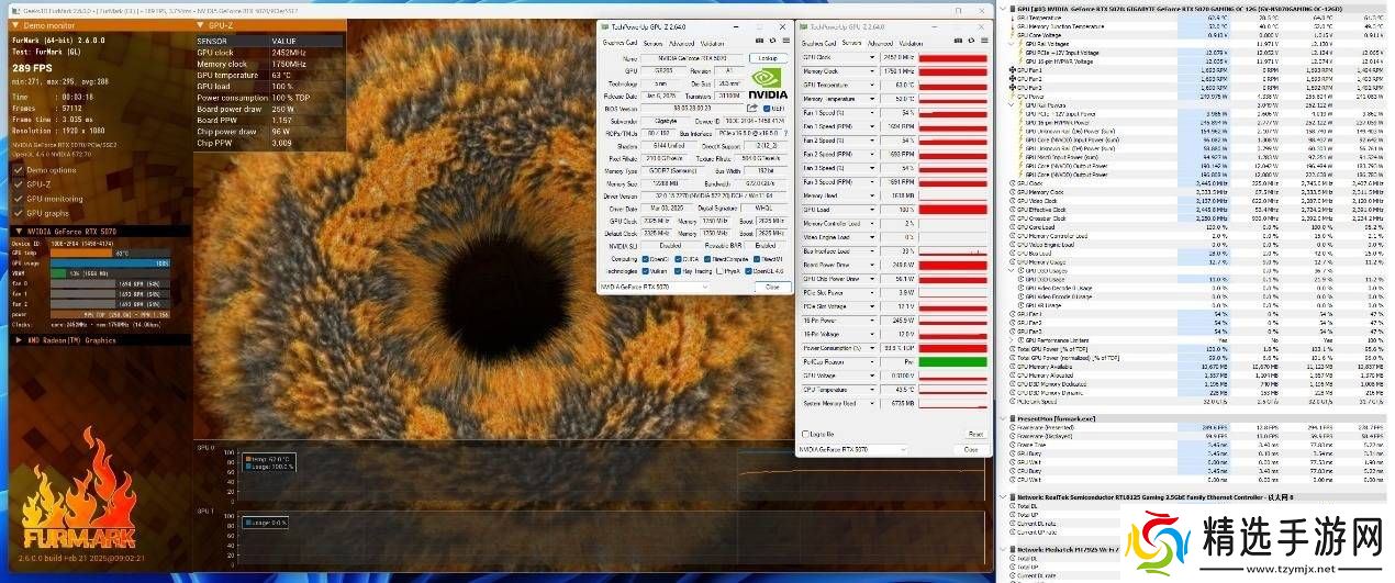 在功耗与温度表现方面,技嘉GeForce RTX 5070 GAMING OC 12G魔鹰同样令人满意。在性能模式下进行Furmark烤机测试10分钟后,其核心温度仅为63度,显存温度更是低至52度,功耗也控制在合理范围内。静音模式下,虽然温度略有上升,但风扇转速降低,整体噪音表现更佳。