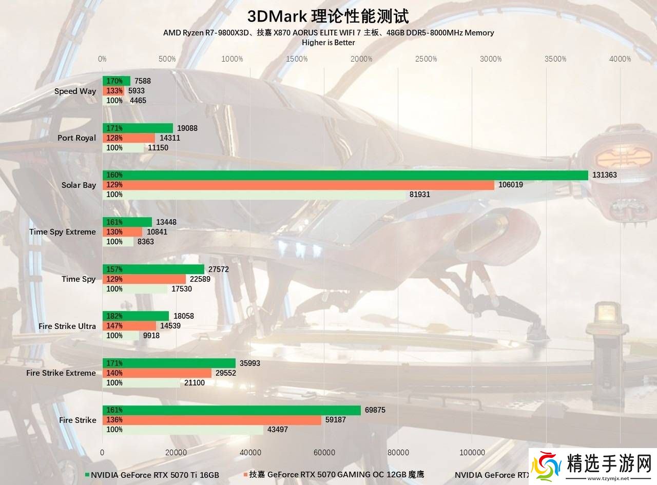 在性能测试中,技嘉GeForce RTX 5070 GAMING OC 12G魔鹰展现出了强大的实力。在3DMark的Fire Strike和Time Spy测试中,相比RTX 4070,其在不同分辨率下均有显著的性能提升。特别是在Port Royal光追测试中,得分提升了约29%。