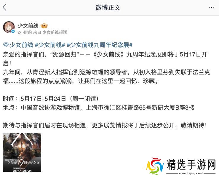 本站 4 月 18 日消息,《少女前线》游戏官方微博今日发文,宣布该游戏将于 5 月 17 日起开启 9 周年纪念展。