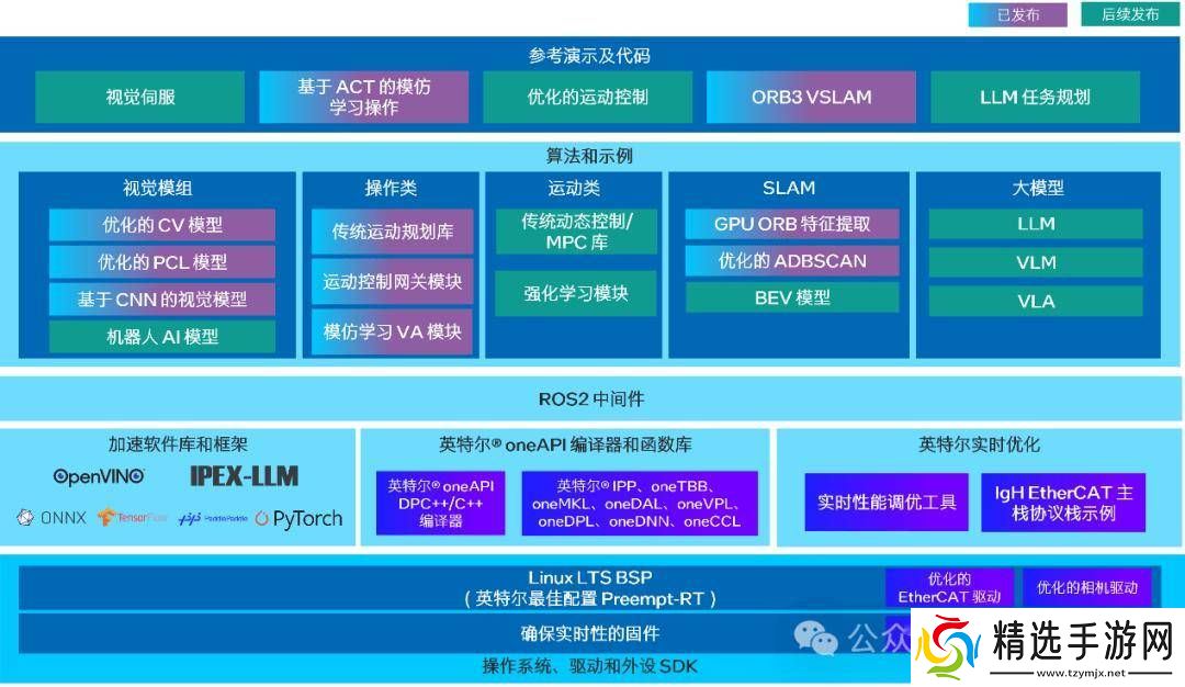 为了进一步优化开发流程,英特尔还推出了具身智能软件开发套件。这一套件包括了OpenVINO工具套件、英特尔oneAPI工具包、Intel Extension for PyTorch-LLM(IPEX)、英特尔工业边缘控制平台(ECI)以及基于开源机器人操作系统的库、中间件和示例应用程序。这些工具的应用,使得代码可以实现一次开发多平台部署,从而大大缩短了评估和开发时间,加快了客户应用程序的部署以及算法和应用的运行。