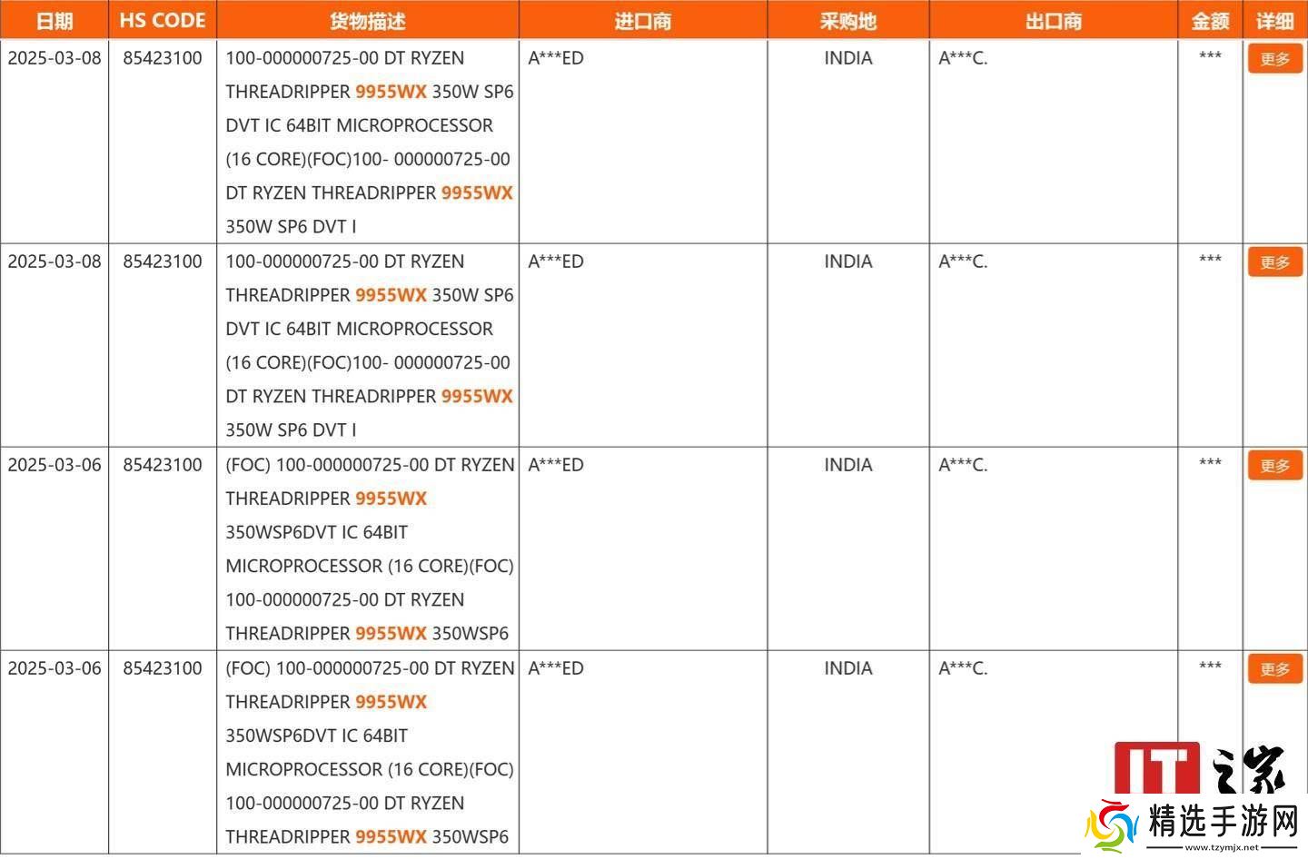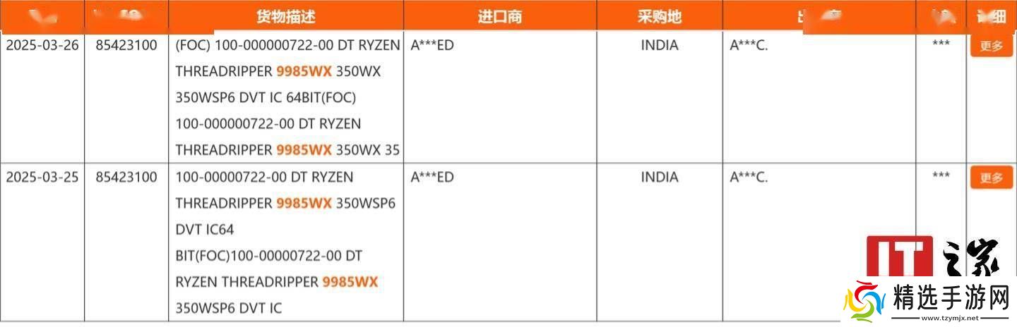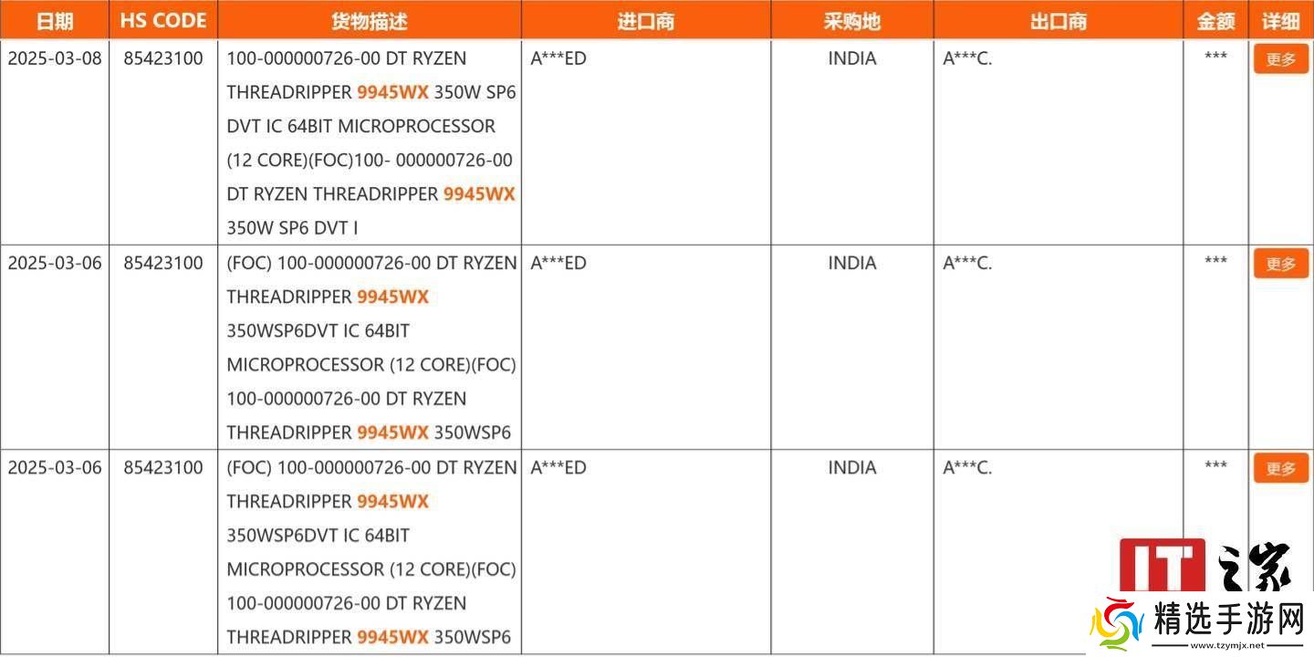 近日,一则关于AMD锐龙Threadripper PRO系列新款处理器的消息引起了广泛关注。据悉,第三方海关信息平台NBD纽佰德上出现了三款新型号的记录,分别是9945WX、9955WX和9985WX。