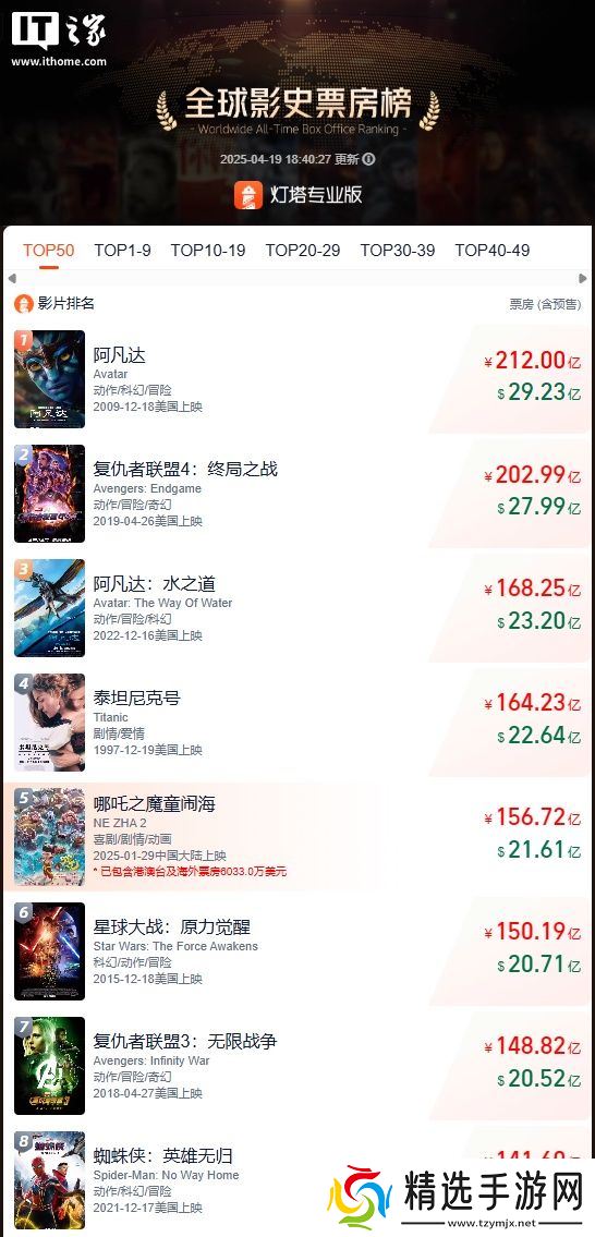 截至本站发文,《哪吒之魔童闹海》位列全球影史票房榜第 5,全球总票房达 156.72 亿元。