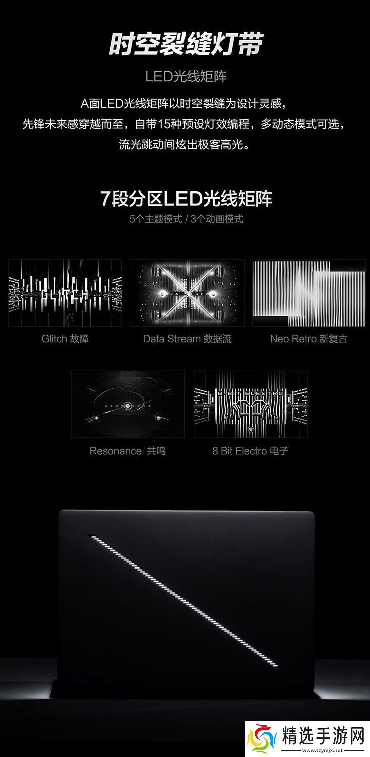 这款笔记本可选铂月白 / 日蚀灰两种配色,笔记本使用航空铝一体化机身,A 面配备ROG光显矩阵灯效,整体重量1.95千克,厚度1.49厘米,内置6扬声器,配备90Wh电池,支持100W PD快充。