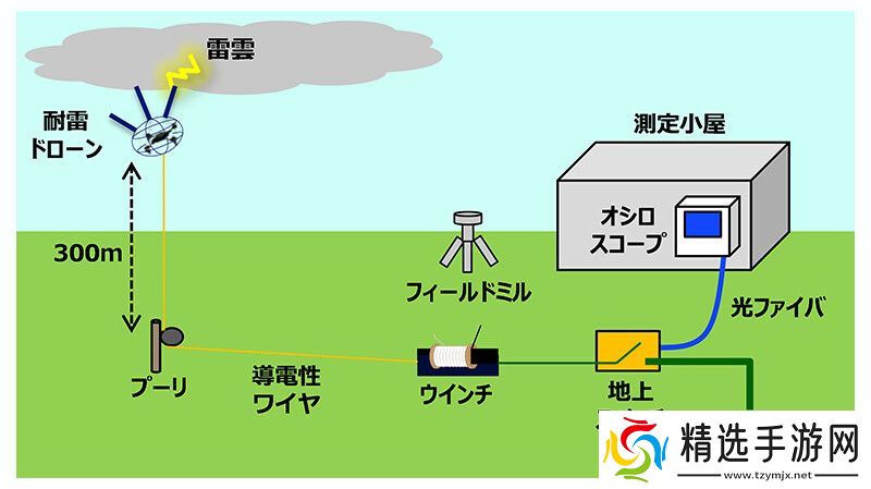 在实验中,研究人员使用了一种名为“场强计”的装置对地面电场进行观测,并在雷云临近时放飞了装有独特防雷笼的无人机,以诱发雷电(图 1)。