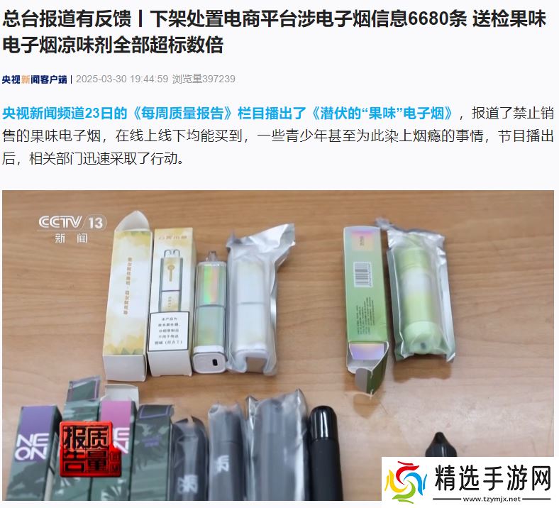 本站 3 月 31 日消息,央视新闻频道 3 月 23 日的《每周质量报告》栏目播出了《潜伏的“果味”电子烟》,曝光果味电子烟盯上未成年人。节目播出后,相关部门采取了行动。
