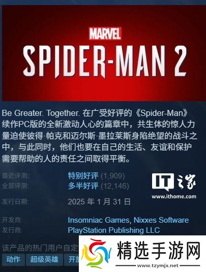本站 4 月 1 日消息,索尼《漫威蜘蛛侠 2》游戏于 2025 年 1 月 31 日登陆 Steam 平台。然而,Valve 认为该游戏当时与 Steam Deck 兼容性不足,因此在发售时没有给予“Steam Deck Verified”标签。