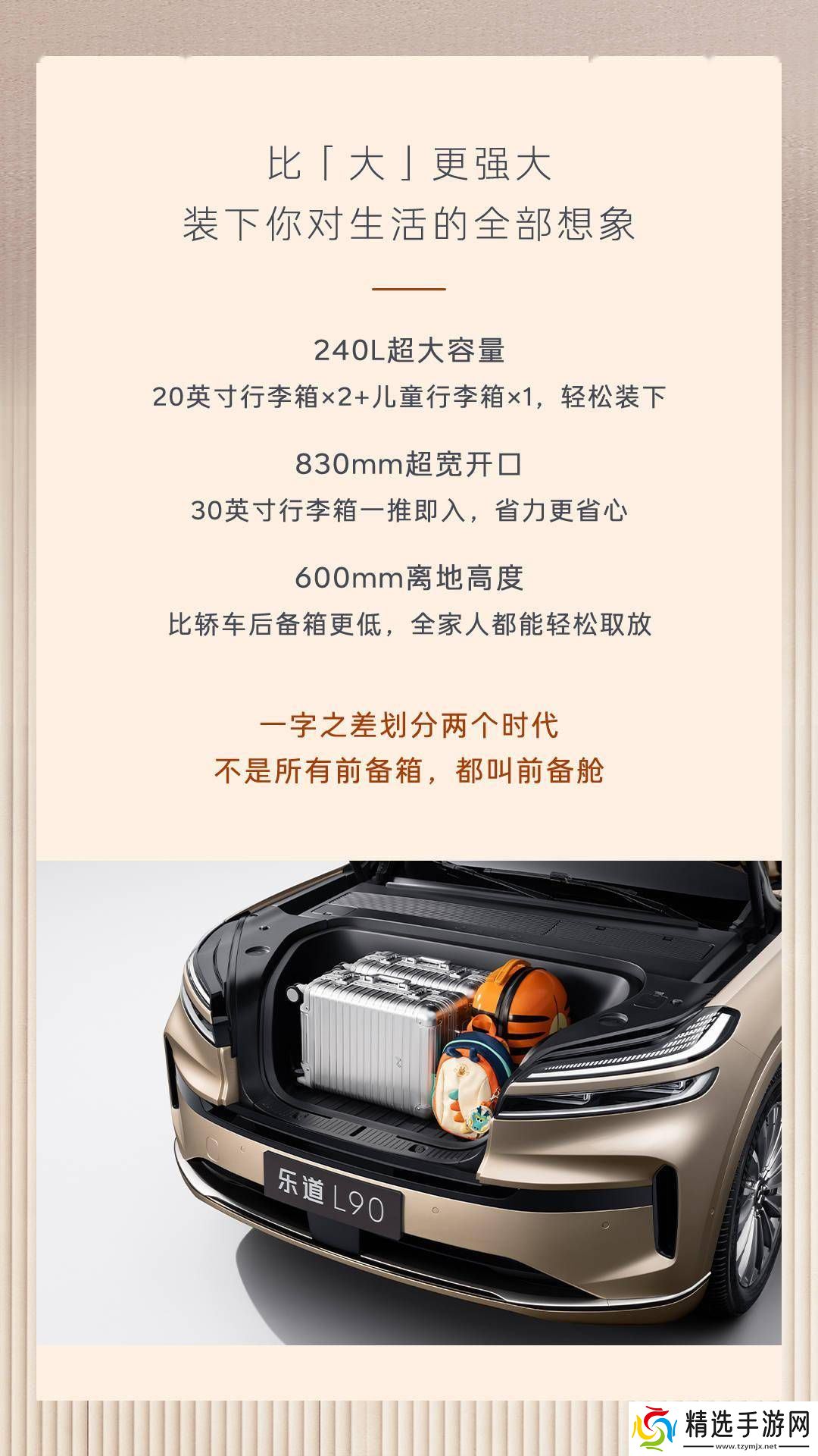 乐道L90的前备舱不仅容量可观,还具备全电动操作功能,引入了智能“乐叩”开启技术,用户只需轻轻双击即可实现开启,极大地提升了使用的便捷性。据悉,该前备舱的开发历时三年,将在即将举行的上海车展上展示更多创新应用场景。