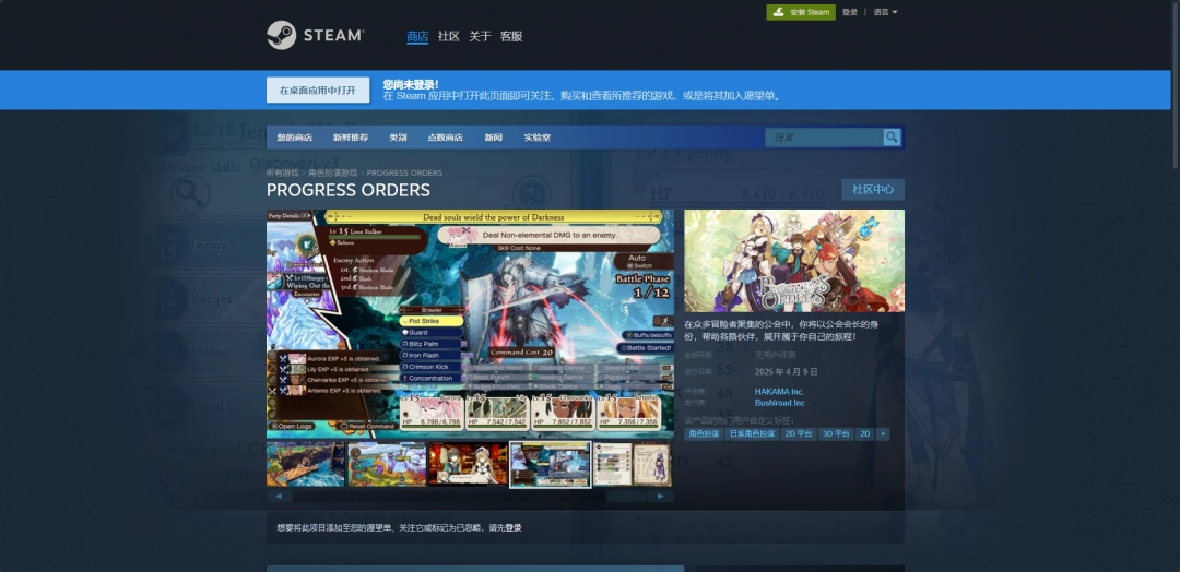 《PROGRESS ORDERS》是由HAKAMA Inc.制作的日系角色扮演游戏,而这款游戏的官网地址就是Steam平台的购买页面,进入到这个游戏的购买页面基本上就能知道所有这款游戏的信息。