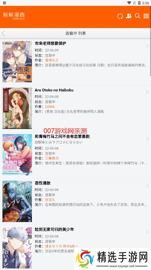新新漫画 官方正版入口测评新新漫画 官方正版入口是一款免费的漫画阅读软件,它汇集了整个网络的漫画阅读资源,所有这些资源都是免费阅读的。它有六个内置服务器。当漫画无法加载时,您可以更换源服务器。它提供了两种阅读方法:翻页和下拉阅读,并支持搜索漫画名称和作者,涵盖了血液、科幻、恐怖、推理、喜剧、爱情、美丽、体育、魔术和武术等许多主题。这是必要的。软件界面设计简洁明了,用户可以轻松上手。主页推荐各种流行漫画和个性化推荐,并根据用户的阅读历史和偏好推送符合口味的漫画。让用户在阅读漫画的过程中更加有趣,结交也喜欢漫画的朋友。每天都有大量的漫画资源及时更新。