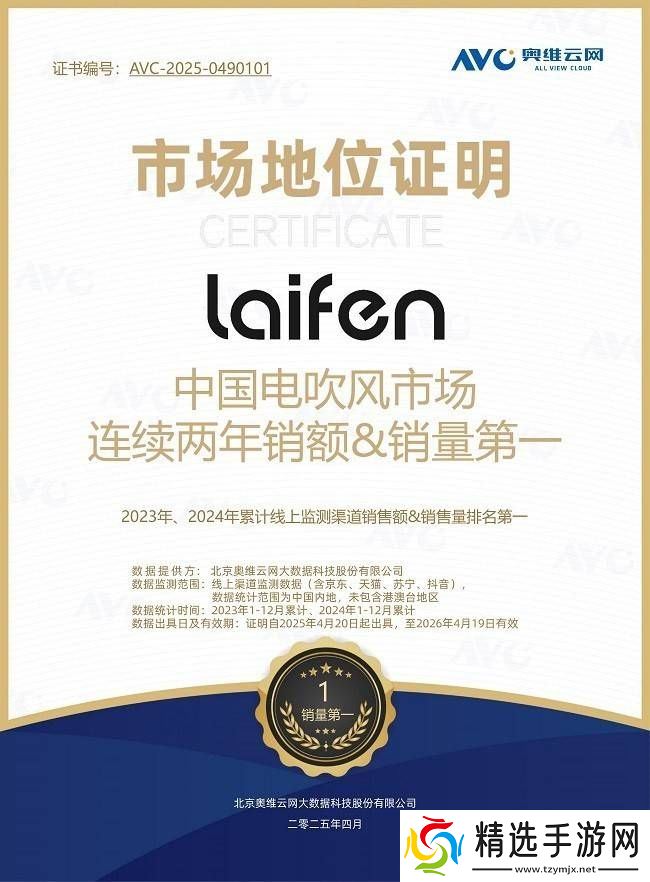 近日,权威市场调研报告《中国吹风机市场年度报告》由知名机构奥维云网(AVC)正式发布,揭示了国产高端个护品牌徕芬(laifen)在中国吹风机市场的卓越表现。徕芬凭借其出色的产品性能和市场策略,连续两年稳居中国吹风机销量与销售额双料冠军,成为行业的领军者。这一成绩不仅彰显了徕芬在高速吹风机领域的强大竞争力,也体现了国货品牌通过技术革新实现高端市场突破的实力。