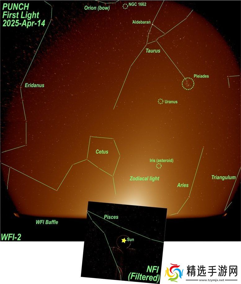 PUNCH 任务于 4 月 14 日打开了近场成像仪(NFI)和一台广角成像仪(WFI)的仪器舱门,并于 4 月 16 日打开另外两台 WFI 舱门,完成了“首光”图像采集。