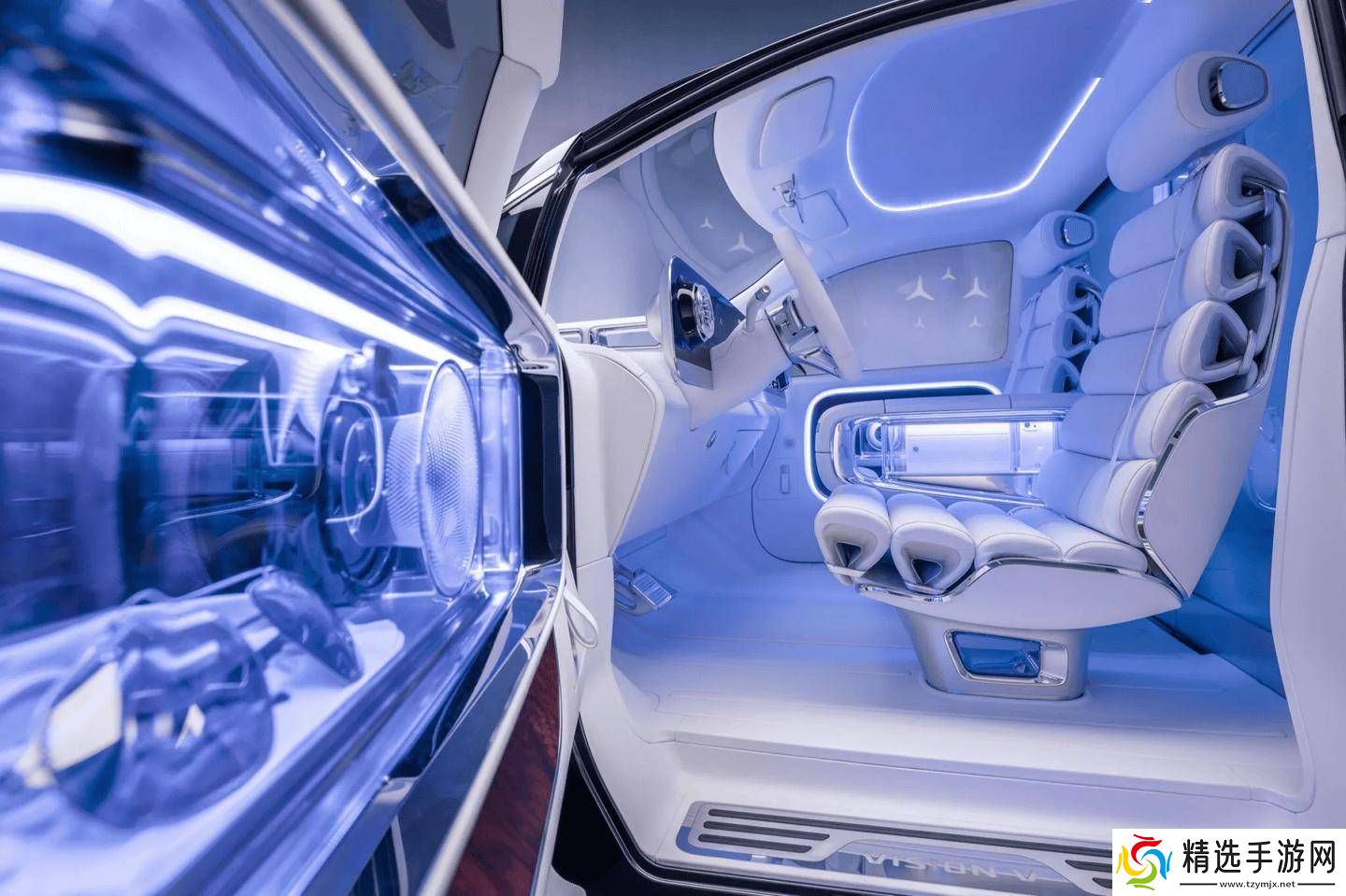 除了视觉和听觉的享受,Vision V在乘坐舒适度上也下足了功夫。后排两张由晶白Nappa皮革和丝绸制成的休息椅,可以完全平躺,为乘客提供小憩的绝佳环境。折叠桌还能变身为棋盘,为旅途增添了一份雅致与乐趣。