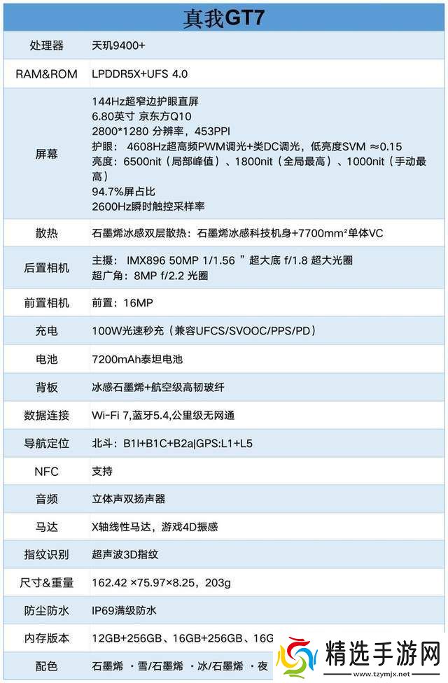 在屏幕方面,真我GT7同样表现出色。它采用了一块6.8英寸的BOE京东方Q10发光材料直屏,分辨率为2800×1280,支持144Hz刷新率和2600Hz瞬时触控采样率。同时,它还支持1800nit的全局激发亮度和4608Hz超高频PWM调光+类DC调光,兼顾高亮、护眼与低功耗。得益于1.3mm的极窄边框,真我GT7的正面视觉冲击力极强,屏占比高达94.7%,是游戏旗舰中的颜值担当。