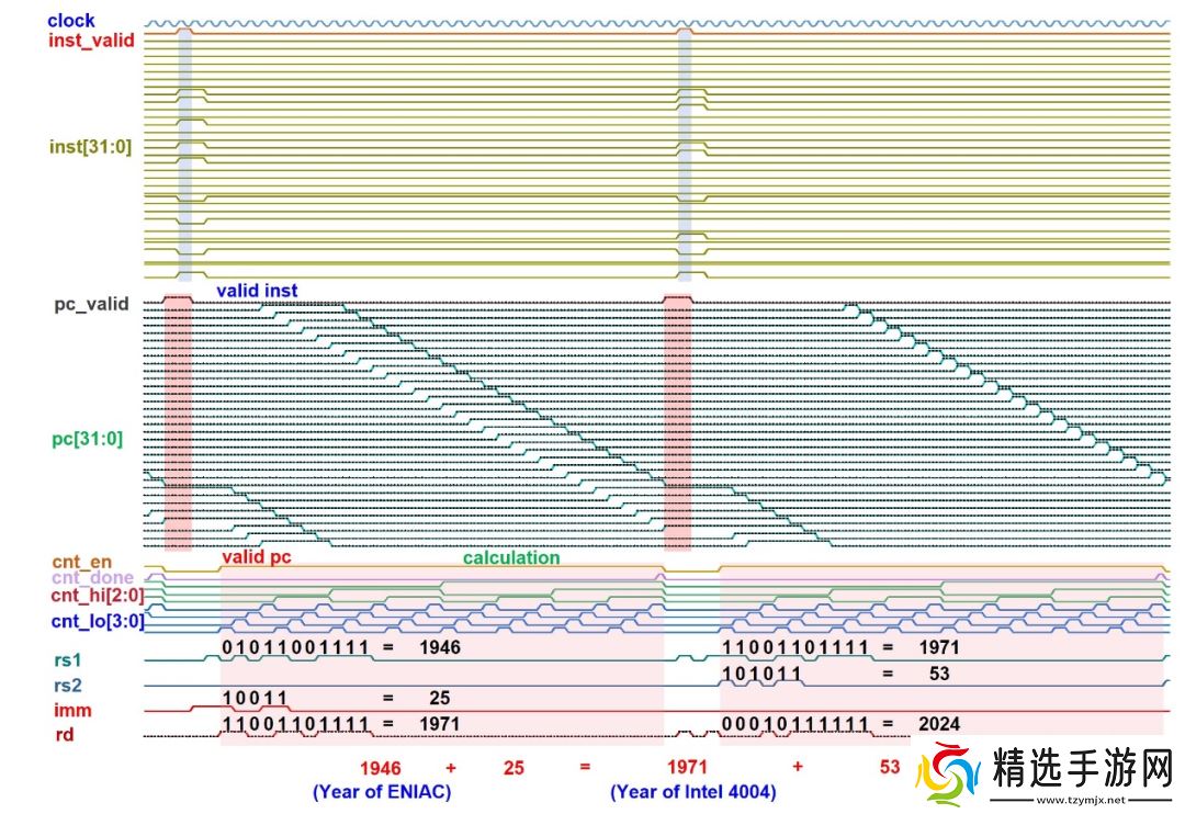 ▲将 ENIAC 和 Intel 4004 以及无极诞生年实现了加法上的运算联系