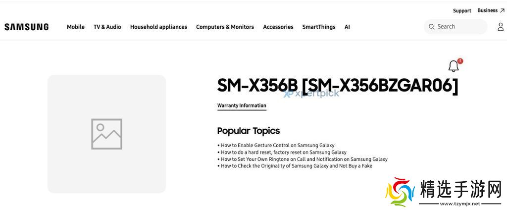 该平板于 2024 年 10 月以 SM-X356B 型号首次现身 IMEI 数据库,近期其 Wi-Fi 版(SM-X350)和蜂窝版的官方支持页面在英国、瑞士和俄罗斯上线。本站附上相关图片如下: