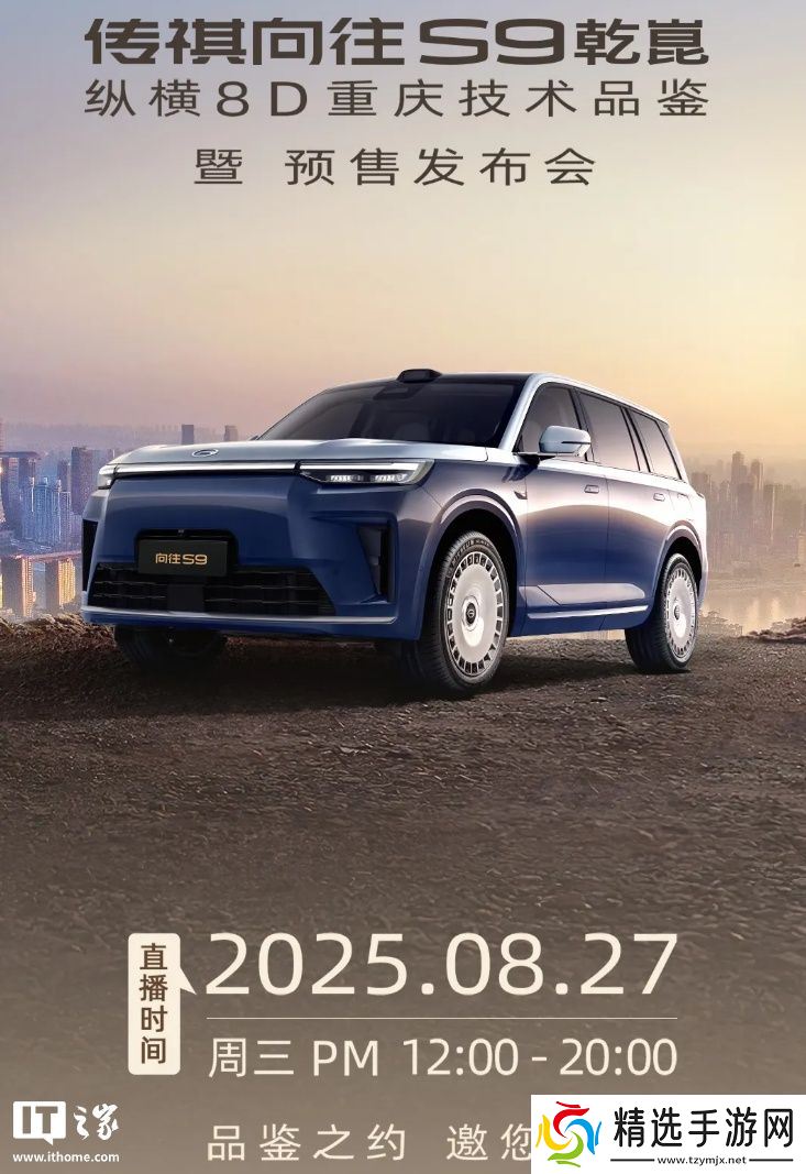 本站 8 月 26 日消息,广汽传祺今日宣布,向往 S9 乾崑汽车将在 8 月 27 日开启预售,新车全系标配华为乾崑智驾 ADS 4,届时将进行 8D 重庆实战直播,具体时间为当天下午 12:00-20:00。