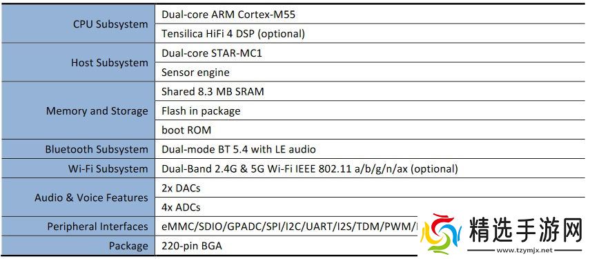 该芯片可应用于带 ANC 的智能 Wi-Fi 和蓝牙耳机 / 游戏耳机、具有实时自适应 ANC 的智能 TWS 耳塞、智能无线音箱、智能眼镜、其他便携式音频设备等,特点 / 规格如下: