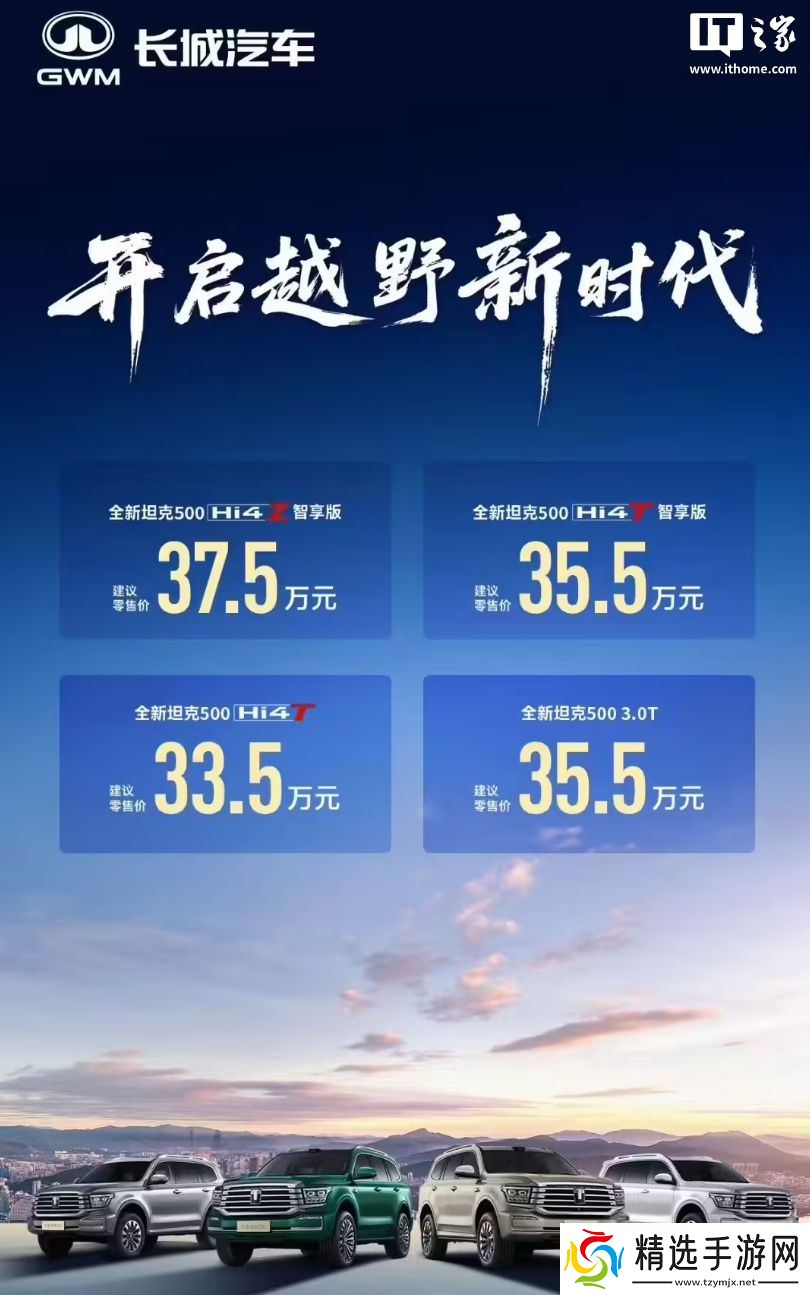 本站 8 月 28 日消息,长城汽车官方昨日晚宣布全新坦克 500 正式上市,官方指导价 33.5~37.5 万元。