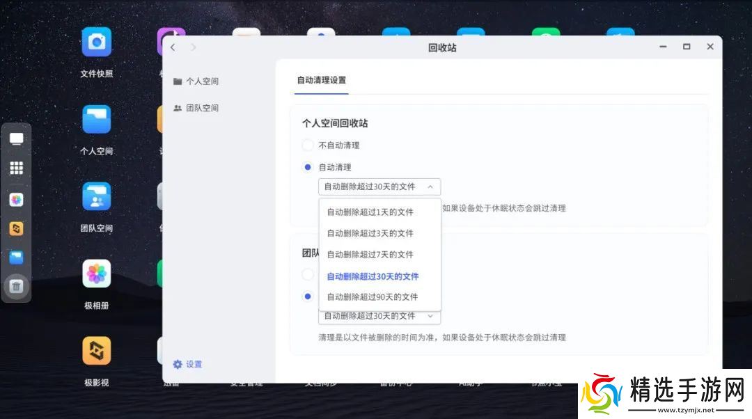 回收站现支持自定义设置定时自动清理功能,可根据需要进行设置,支持自动删除超过 1-90 天的文件,无需手动查找删除,随时为系统“瘦身”,释放更多可用空间。