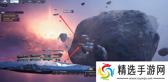 2、根据提示可以先后旋转视角查看自己的母舰和远处的小行星空间站。