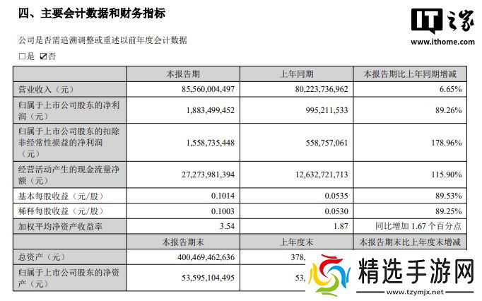 基本每股收益 0.1014 元 / 股,同比增长 89.53%