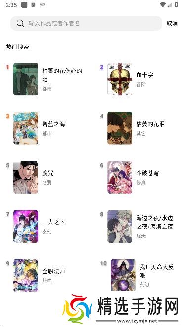 7、点击顶部的搜索框还能快速查找漫画。