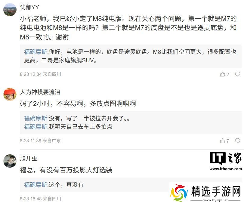 本站注意到,问界 M7 产品经理 @福碗摩斯 在自己的微博评论区回复了部分网友的问题,其中透露了部分产品信息,相关信息整理如下: