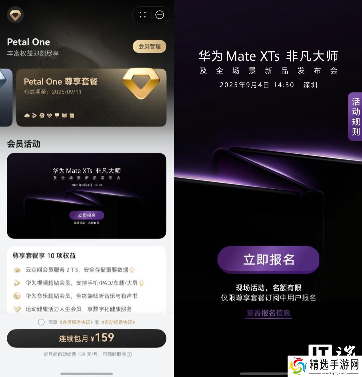本站 8 月 31 日消息,华为 Mate XTs 非凡大师及全场景新品发布会将于 9 月 4 日举办,目前发布会报名入口已开启,订阅了 Petal One 尊享套餐的用户可前往相应套餐页面报名。