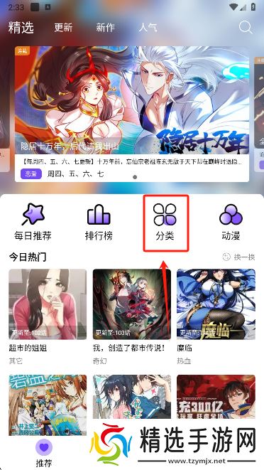 1、打开软件进入到推荐页面可以看到各种漫画