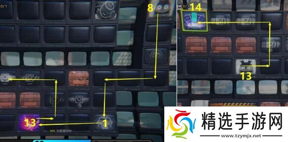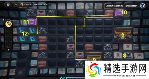 (6)8区域上下左右4个控制机关,可以控制9机械移动,将9机械按照下图路线,依次拿了10和11区域的奖励后,进入12区域即可;