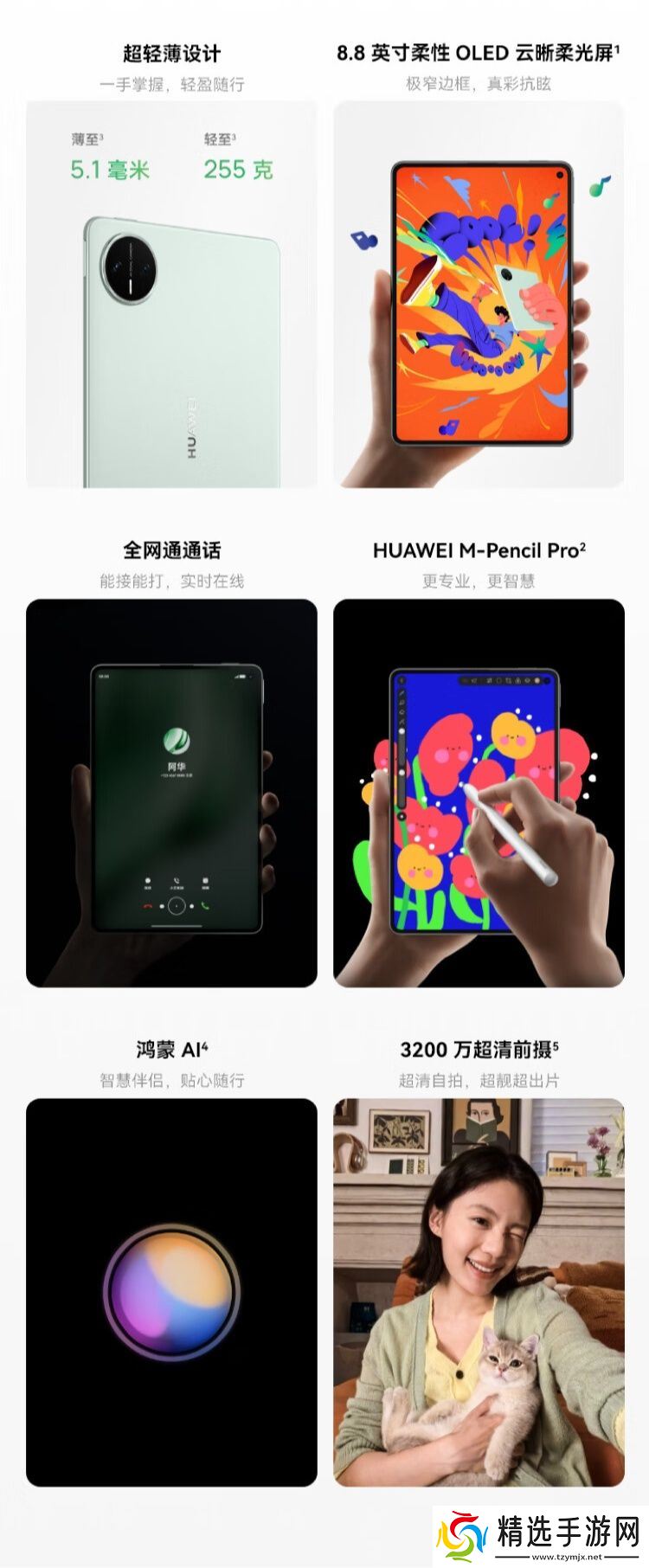 新机还支持双向北斗卫星短信、华为平板首次支持灵犀通信,前置 32MP 镜头,后置 50MP+8MP 镜头,配有侧边指纹,支持华为 M-Pencil Pro 手写笔。