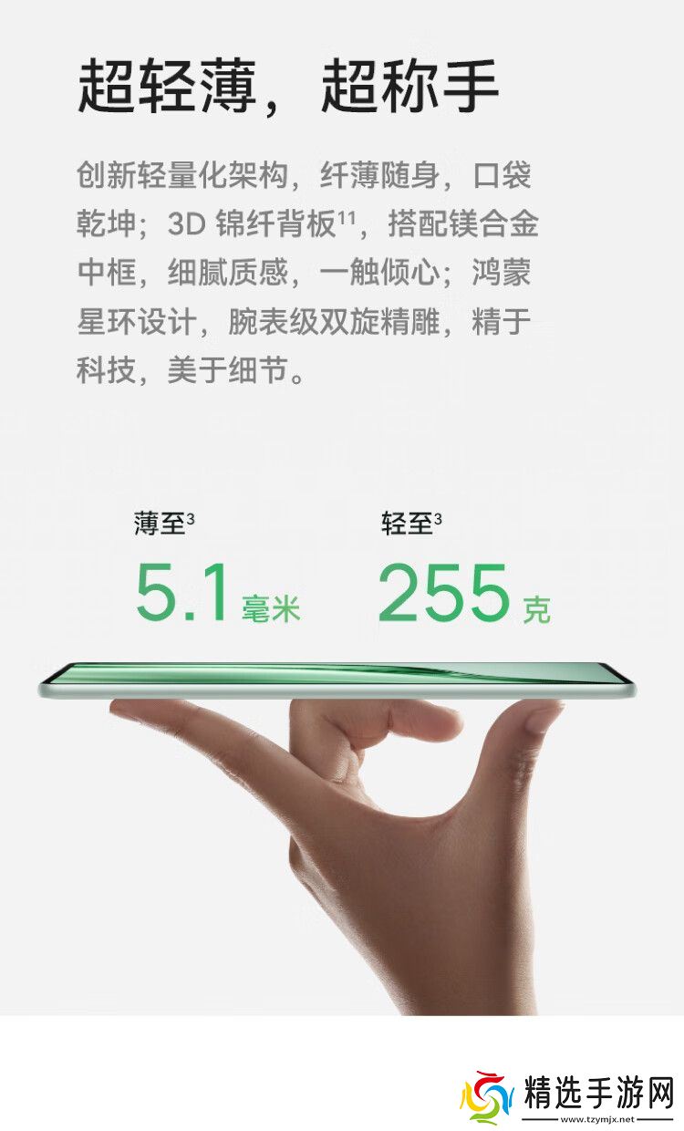 新机可选雪域白 / 曜石黑 / 云杉绿配色,以及一款特别的“寰宇红”典藏版配色,厚 5.1/5.2/5.6mm,重 255g / 260g / 266g,配有锦纤 / 素皮后盖,预装 HarmonyOS 5.1。