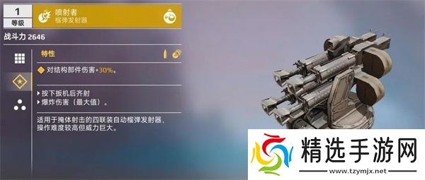 技能效果:对结构部件造成的伤害提升30%,这意味着“喷射者”能够造成与其外观极不相称的恐怖伤害。