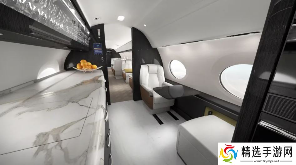 G800 在飞行高度为 12,497 米(41,000 英尺)时,客舱压力高度达到业界最低的 866 米(2,840 英尺),客舱内实现 100% 新鲜空气循环,配备等离子空气净化系统以及 16 扇 Gulfstream 椭圆形全景舷窗。舱内空间可配置多达四个起居区,或者三个起居区外加一个机组专用舱。本站附舱内图如下: