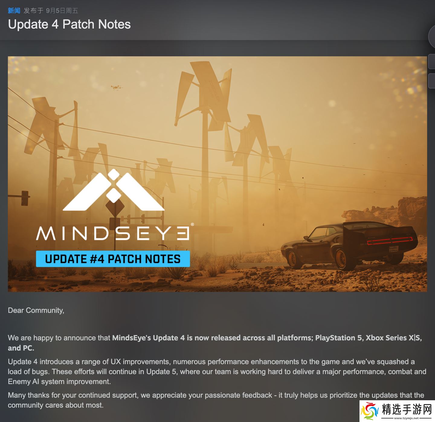 Build a Rocket Boy 在游戏的 Steam 页面上发布的更新中写道:“4 号更新引入了一系列用户体验改进,对游戏进行了大量性能提升,并修复了大量 Bug。这些努力将在 5 号更新中继续进行,我们的团队正在努力提供重大性能、战斗和敌人 AI 系统的改进。我们仍然致力于完善《心之眼》,提升游戏体验。后续更新将继续发布。”