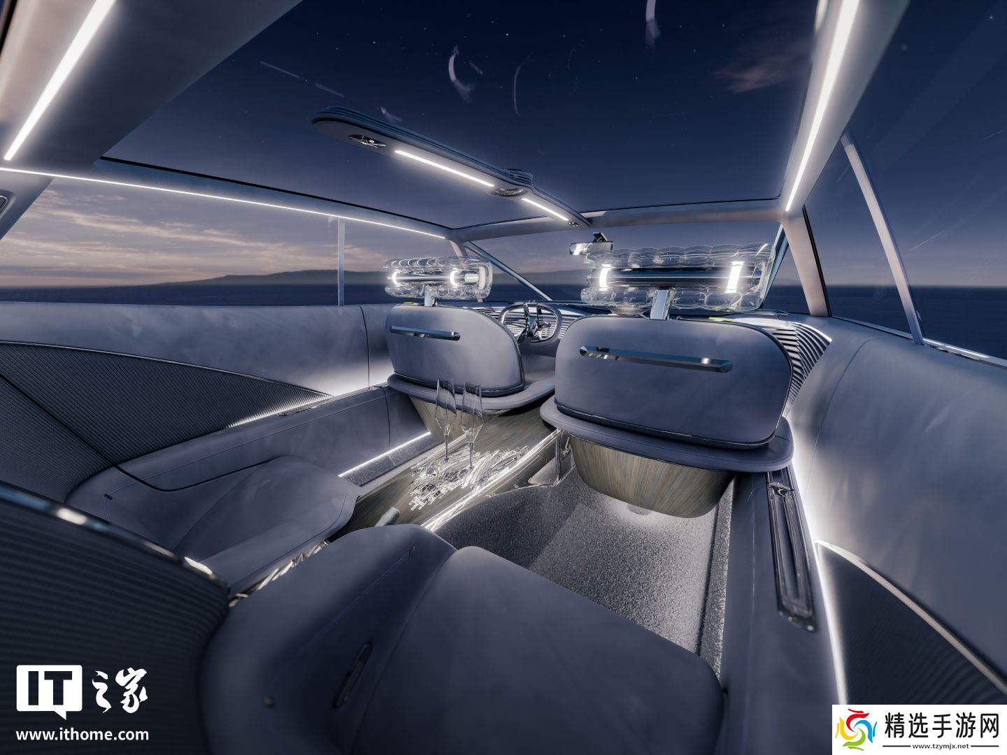 本站注意到,从车头延伸至车尾的巨大玻璃车顶是其最显著的特征之一,创造出极为开阔的视野。该车采用了隐藏式车门把手和无 B 柱设计,车门采用了对开式设计,车内空间通透,上下车也更方便。