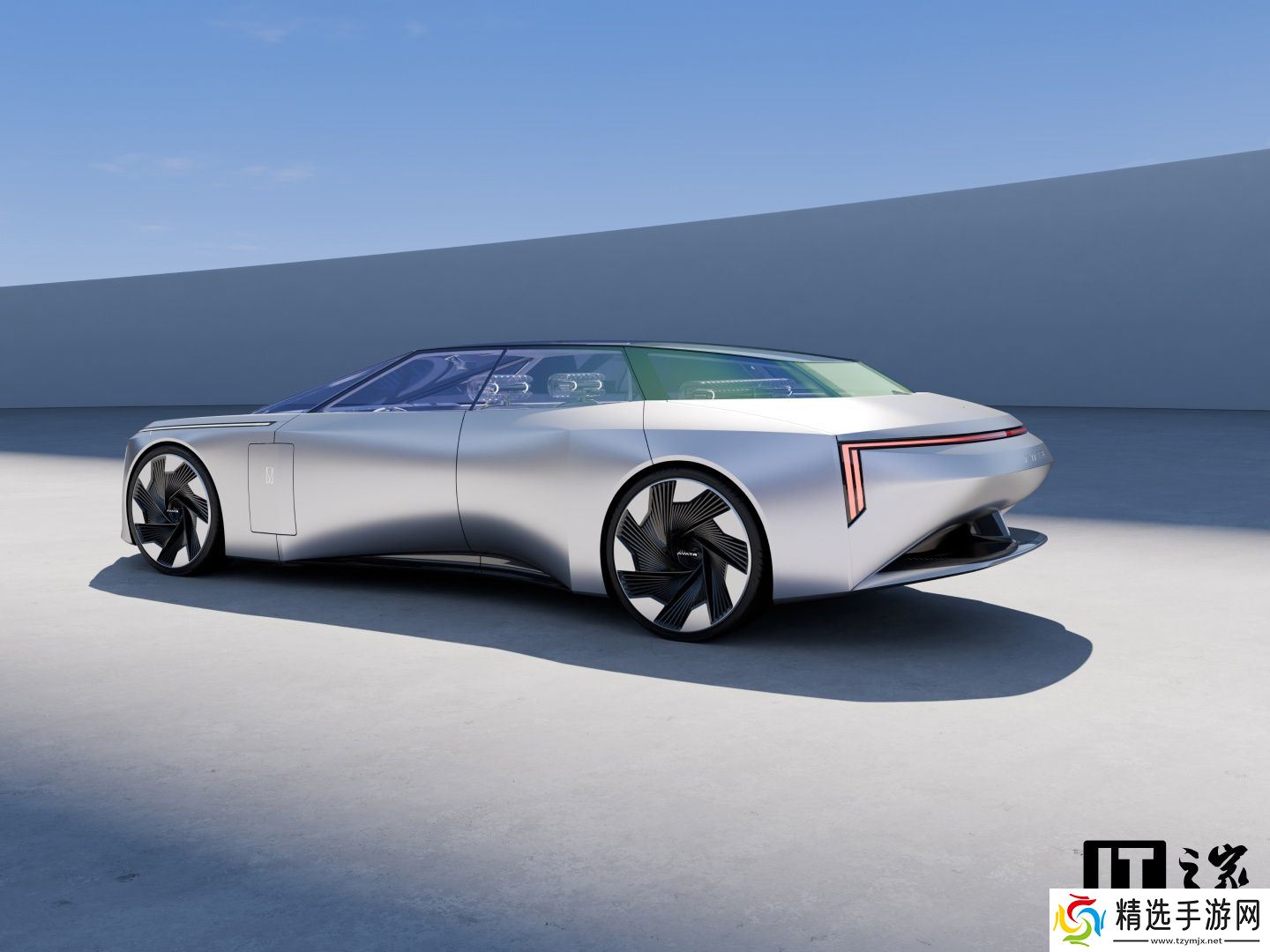 图片显示,这款概念车的设计极具未来感,车身线条流畅、简洁,呈现出一种流线型的造型。前脸采用了垂直排列的矩阵式 LED 灯组,非常有辨识度,车尾则是贯穿式尾灯。
