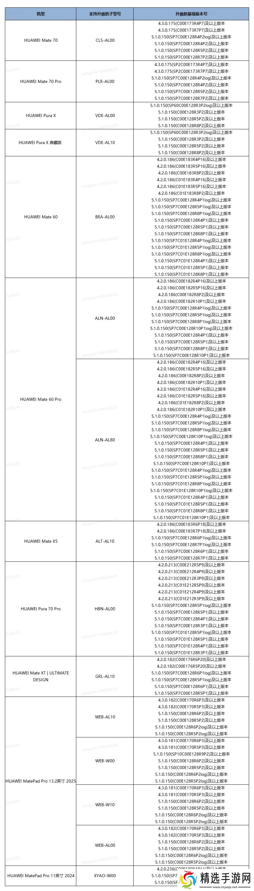 A:当前仅支持在中国大陆使用且在基线版本的以下机型:HUAWEI Mate 60、HUAWEI Mate 60 Pro、HUAWEI Mate 70、HUAWEI Mate 70 Pro、HUAWEI Mate X5、HUAWEI Mate XT | ULTIMATE DESIGN、HUAWEI Pura X、HUAWEI Pura X 典藏版、HUAWEI Pura 70 Pro、HUAWEI MatePad Pro 13.2 英寸 2025、HUAWEI MatePad Pro 11 英寸 2024。具体支持升级的机型及子型号详见“机型及基线版本清单”。不同产品的版本规划有所不同,其他机型升级计划请您关注后续华为官方消息。