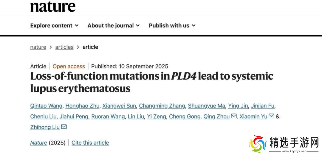 2025 年 9 月 10 日,由浙江大学良渚实验室、东部战区总医院国家肾脏疾病临床医学研究中心和浙江大学生命科学研究院等单位合作完成一项题为“Loss-of-function mutations in PLD4 lead to systemic lupus erythematosus”的研究论文在 Nature 发表。该研究首次证实人类 PLD4 缺陷可导致 SLE 并阐明了其致病机制,为 SLE 的精准诊疗提供了重要理论依据。