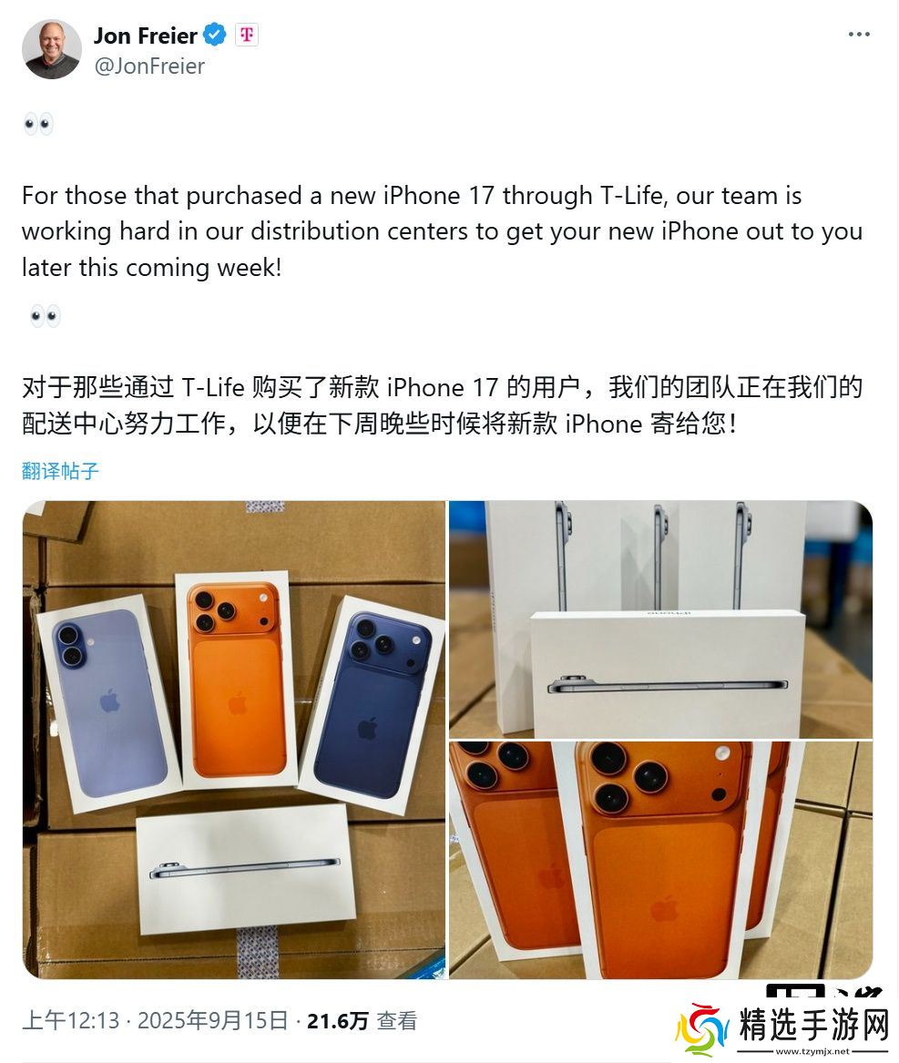 本站 9 月 15 日消息,科技媒体 MacRumors 今天(9 月 15 日)发布博文,报道称美国电信运营商 T-Mobile 总裁 Jon Freier 在 X 平台发布推文,分享了一组实拍图片,展示了苹果 iPhone Air、iPhone 17、iPhone 17 Pro 的包装盒。
