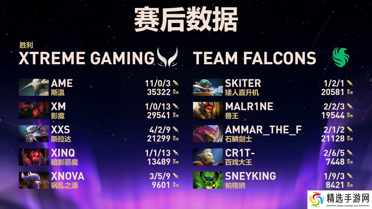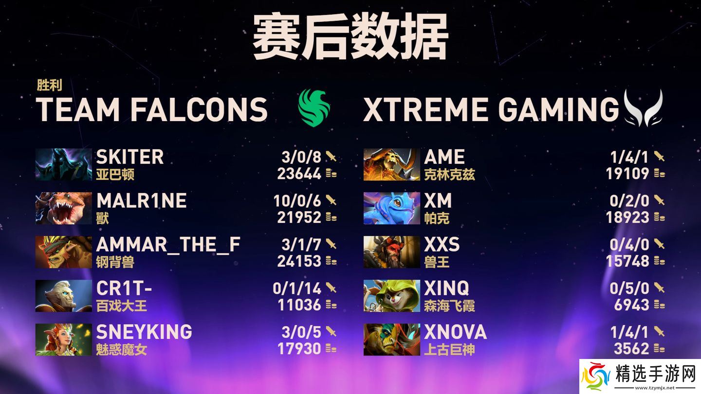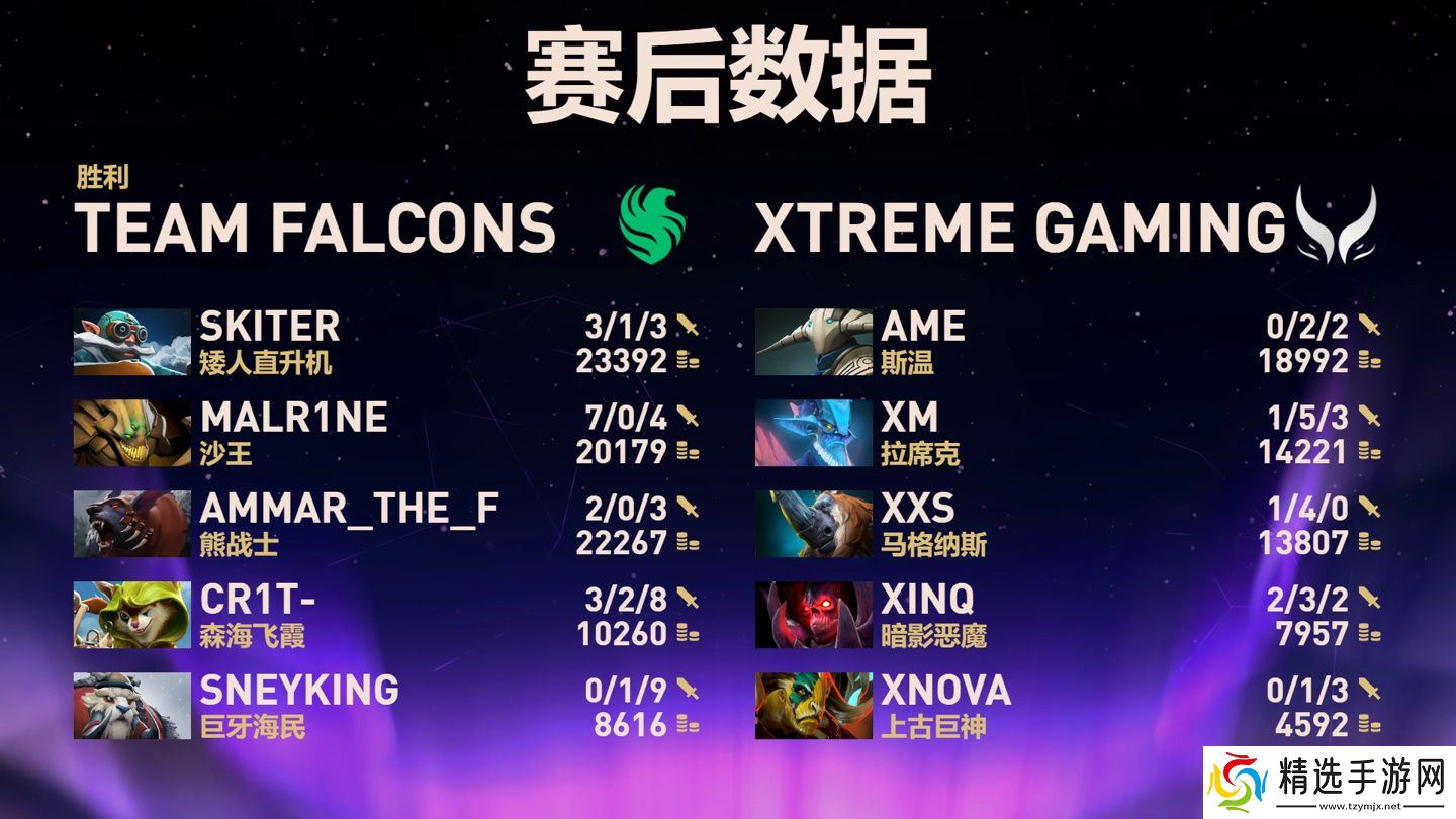 然而,XG 战队在决赛率先拿到 2 个赛点的情况下,错失好局,最终以 2:3 的比分憾负强敌 Falcons 战队。