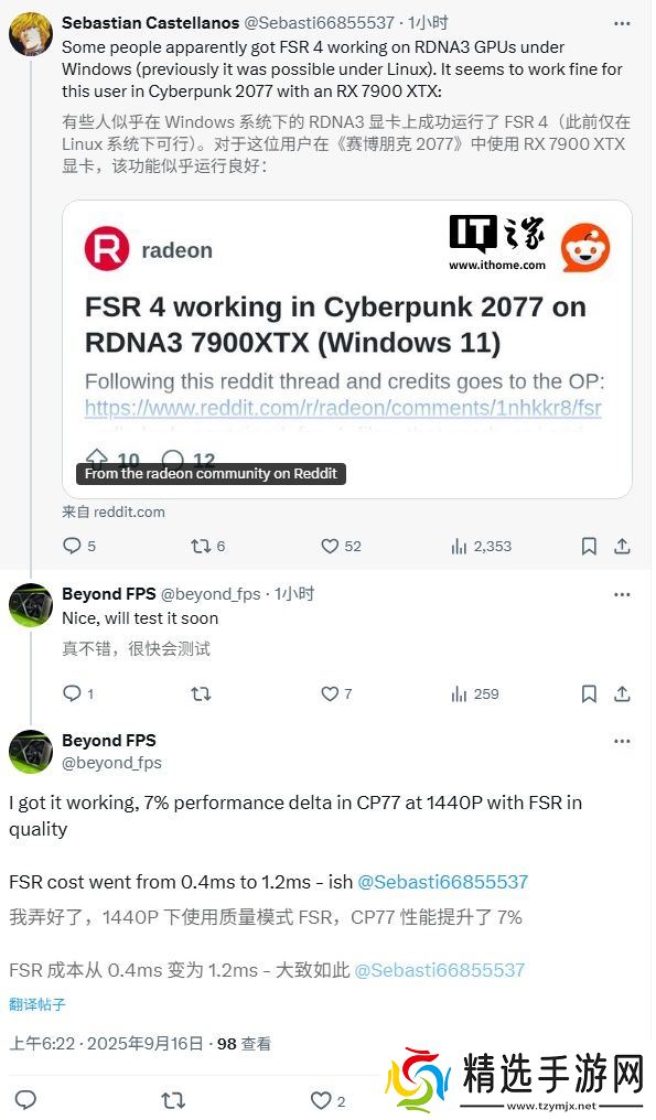 《AMD 意外开源核心文件,FSR 4 超分技术有望下放支持 RX 7000 系列显卡》
